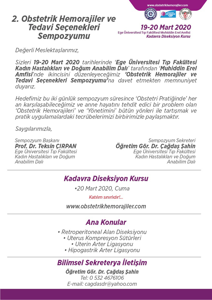 2.Obstetrik Hemorajiler ve Tedavi Seçenekleri Sempozyumu | 19-20 Mart 2020