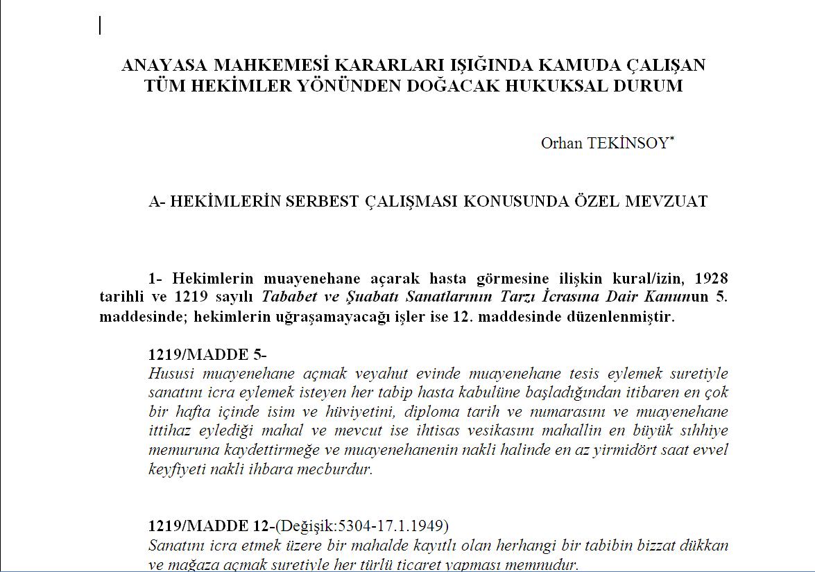 ANAYASA MAHKEMESİ KARARLARI IŞIĞINDA KAMUDA ÇALIŞAN TÜM HEKİMLER YÖNÜNDEN DOĞACAK HUKUKSAL DURUM