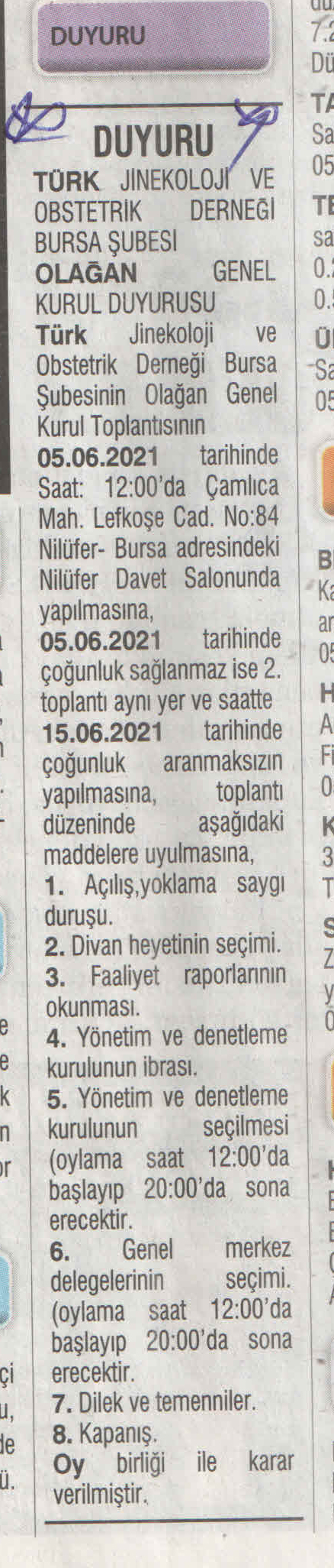TJOD Bursa Şubesi Olağan Genel Kurul Toplantısı | 05 Haziran 2021